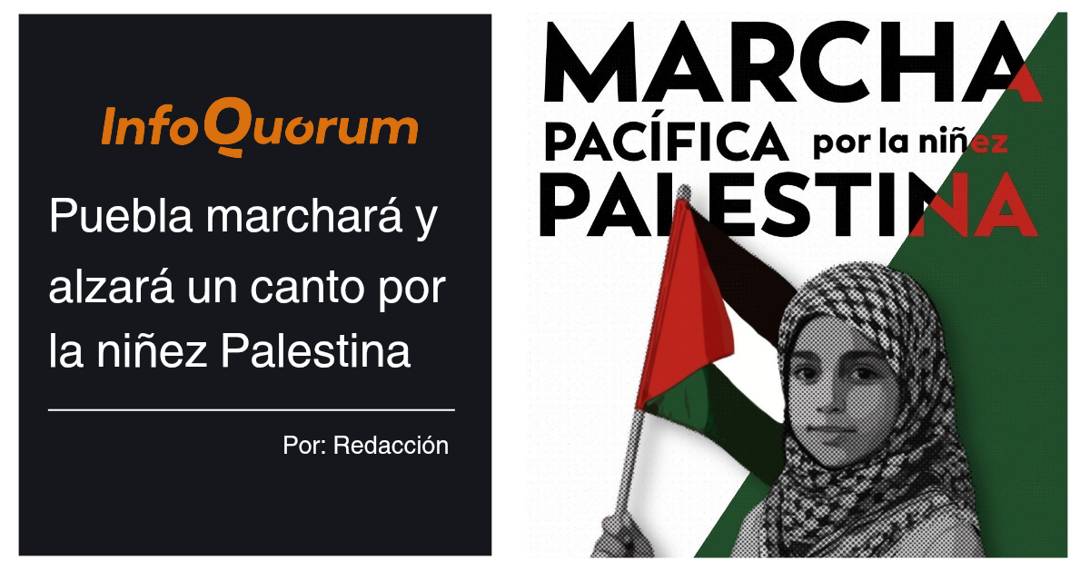 El próximo domingo 21 de septiembre se realizará en Puebla una marcha pacífica por la niñez Palestina, convocada por el Frente Comunicacional Antifascista, perteneciente al capítulo mexicano de la Internacional Antifascista, que busca sumar presión a la exigencia de que el gobierno mexicano tomé un papel más activo en la condena al genocidio cometido por Israel y que, a lo largo de un año y once meses, ha dejado un mínimo, confirmado por las autoridades gazaties, de 65 mil palestinos muertos, pero que, de acuerdo a las estimaciones de la relatora especial de ONU, Francesca Albanese, podrían llegar hasta 380 mil muertes de palestinos, siendo 380 mil de ellos, niños menores a los cinco años.